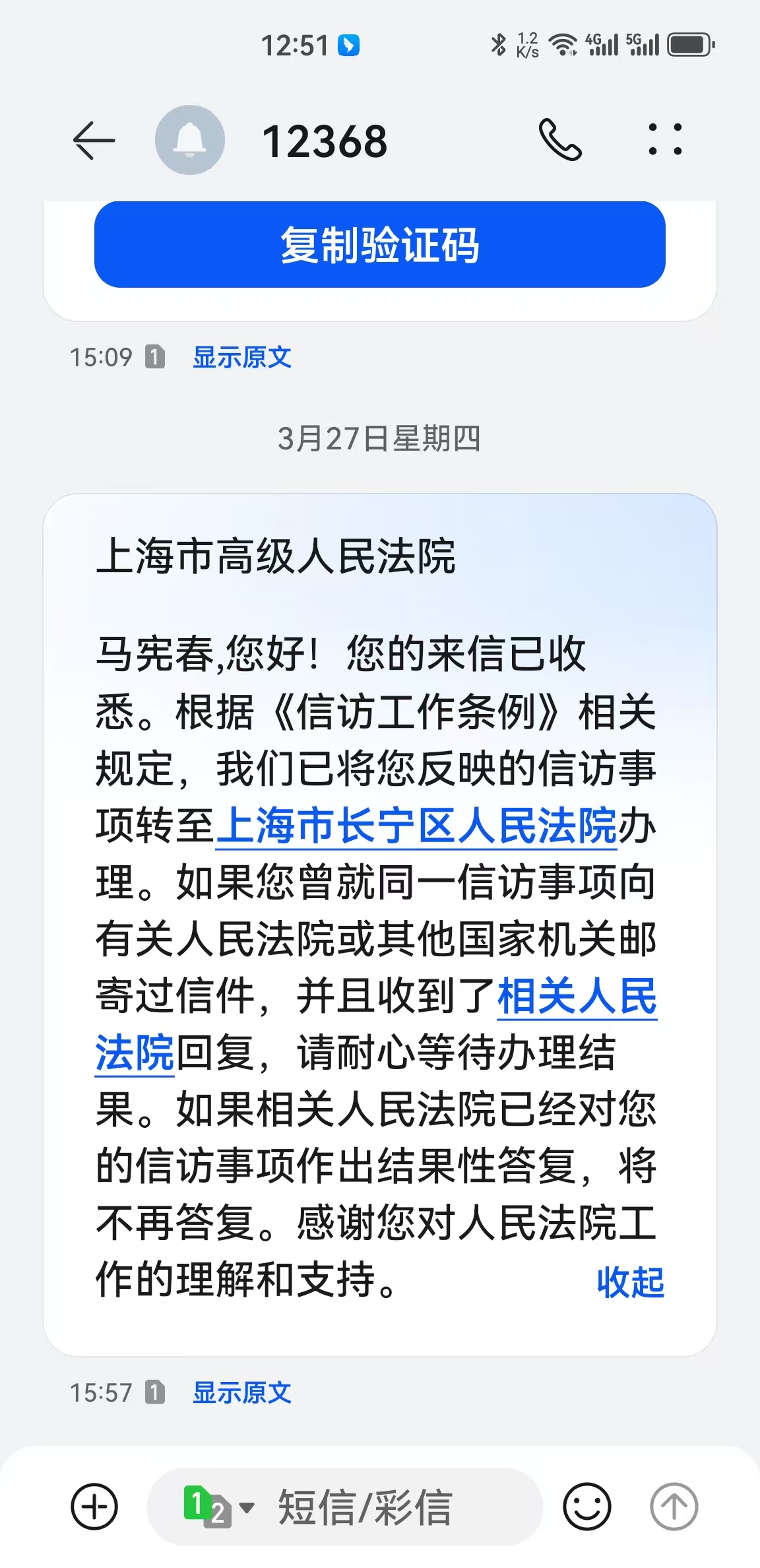 纸版举报信--前天已经邮政快递给长宁法院13封